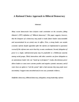A Rational Choice Approach to Illiberal Democracy Abstract: Many recent democracies have de-facto weak constraints on the executive, fitting
