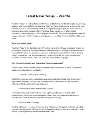 updated with current affairs is crucial, and Vaartha E-Paper has emerged as one of the most