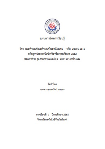 20701-2110 วิชาคอมพิวเตอร์ในงานโรงแรม