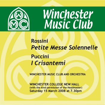 3 WINCHESTER MUSIC CLUB Winchester College New Hall Saturday 15 March 2008 Puccini I Crisantemi Brian Howells leader of the Orchestra Rossini Petite Messe Solennelle