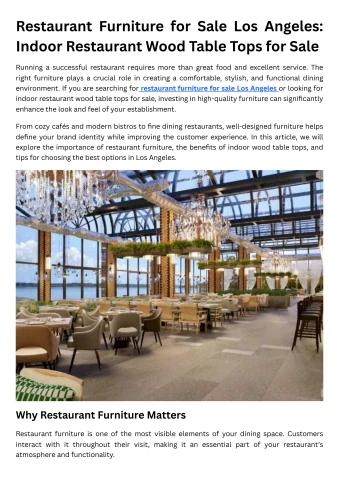 Running a successful restaurant requires more than great food and excellent service. The right furniture plays a crucial role in creating a comfortable, stylish, and functional dining environment. If you are searching for restaurant furniture for sale Los Angeles or looking for indoor restaurant wood table tops for sale, investing in high-quality furniture can significantly enhance the look and feel of your establishment.