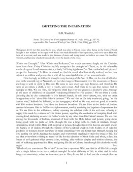 ! 1! IMITATING THE INCARNATION B.B. Warfield From The Savior of the World (reprint: Banner of Truth, 1991), p. 247-70; reprinted in The Person and Work of Christ (P&R ...