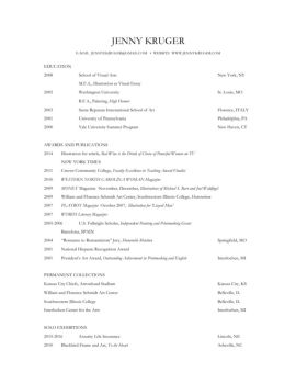 • website www.jennykruger.com education 2008 school of visual arts new york, ny