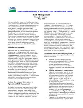 United States Department of Agriculture—2007 Farm Bill Theme Papers Risk Management Executive Summary May 2006 This paper is the first in a series of briefing ...