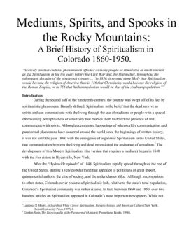 Mediums, Spirits, and Spooks in the Rocky Mountains: A Brief History of Spiritualism in Colorado 1860-1950. “Scarcely another cultural phenomenon affected as many ...
