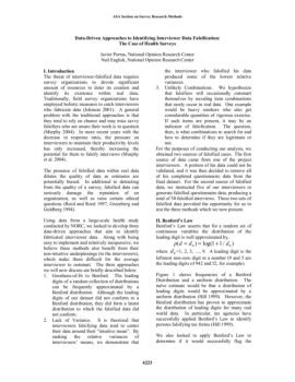 Data-Driven Approaches to Identifying Interviewer Data Falsification: The Case of Health Surveys Javier Porras, National Opinion Research Center