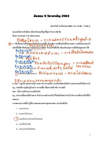 เฉลยสังคม 9 วิชาสามัญ 2563