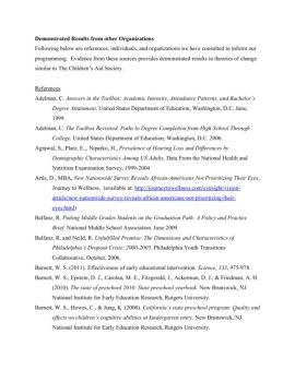 Demonstrated Results from other Organizations Following below are references, individuals, and organizations we have consulted to inform our programming.