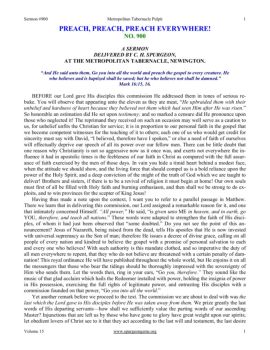 Preach, Preach, Preach Everywhere! Sermon #900 www.spurgeongems.org Volume 15 2 2 expressed by their risen Lord! I claim for my text peculiar attention from every ...