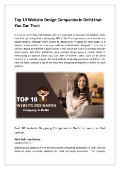 Top 10 Website Design Companies in Delhi that You Can Trust