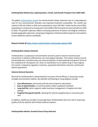 Amifampridine is a potassium channel blocker primarily used to improve neuromuscular transmission in patients suffering from rare neurological disorders.