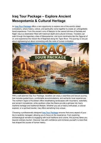 An Iraq Tour Package offers a rare opportunity to explore one of the world’s oldest civilizations, where history, culture, and spirituality come together to create an unforgettable travel experience.