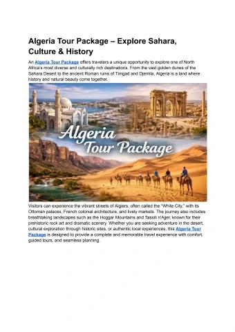 An Algeria Tour Package offers travelers a unique opportunity to explore one of North Africa’s most diverse and culturally rich destinations.