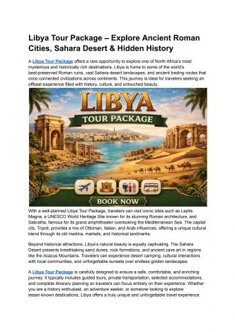 A Libya Tour Package offers a rare opportunity to explore one of North Africa’s most mysterious and historically rich destinations.