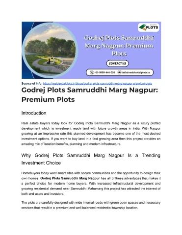 Godrej Plots Samruddhi Marg Nagpur offers premium plots with modern infrastructure, wide roads, green surroundings and strong connectivity. Designed for comfortable living and smart investment, these residential plots promise long-term value, growth and a future-ready lifestyle for families and investors.