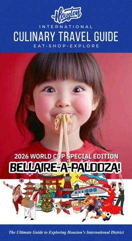 When the FIFA World Cup 2026™ comes to Houston, football fans (or soccer fans, depending on where you’re from) will be searching for the perfect place to explore, shop and try different thing to eat. Just about 20 minutes drive from the stadiums, Houston’s International District is the closest destination all on street — offering a 3 week celebration called Bellaire-Palooza packed with fun, and lots of foods!<br><br>The 2026 World Cup will drive over a million visitors and more than a billion dollars in spending directly into our city (June 14 and July 4, 2026) so position your business to let visitors know your open for business! <br><br>Our stunning, four-color, carefully curated International Culinary Travel Guide is the official resource that will be placed in the hands of over 300,000 visitors and will be distributed strategically at key traveler touchpoints, your advertisement guarantees you are not just a bystander to this windfall, but a featured destination for a captive, high-intent audience. This is your direct channel to capture your share of historic visitor spending.