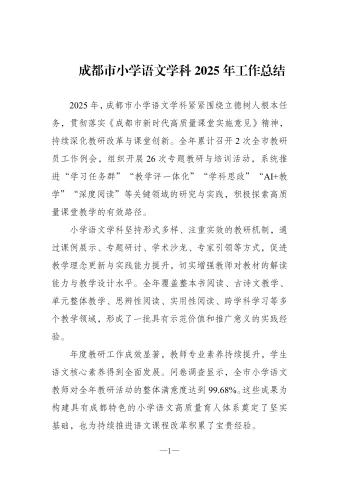 成都市小学语文2025工作总结