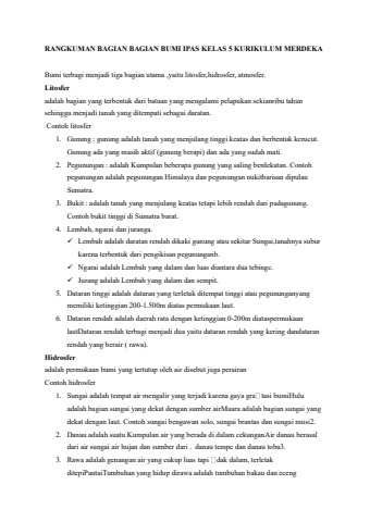 RANGKUMAN BAGIAN BAGIAN BUMI IPAS KELAS 5 KURIKULUM MERDEKA