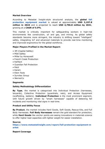 The Global Fall Protection Equipment market is critically important, providing products and solutions engineered in such a way as to protect a worker from falling in nearly every working environment.