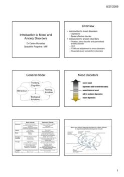 8/27/2009 1 Introduction to Mood and Anxiety Disorders Dr Carlos Gonzalez Specialist Registrar, MRI Overview • Introduction to mood disorders – Depression