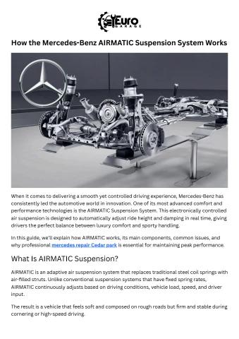 In this guide, we’ll explain how AIRMATIC works, its main components, common issues, and why professional mercedes repair Cedar park is essential for maintaining peak performance.