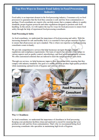 Food Consultant in India