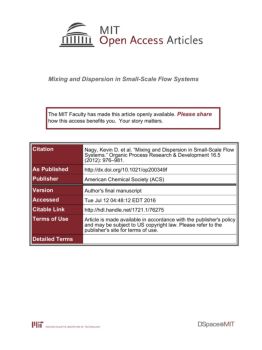 Mixing and Dispersion in Small-Scale Flow Systems Kevin D. Nagy,† Bo Shen,‡ Timothy F. Jamison,*,‡ and Klavs F. Jensen*,† †Departments of Chemical ...