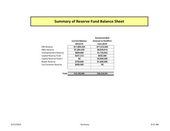 Current Balance 2013/14 ERS Reserve $11,895,344 $11,912,925 EBAL Reserve $7,264,430 $8,045,914 Unemployment Reserve $859,808 $1,724,052 Capital Reserve Fund $437,312 ...
