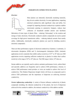 INSIGHTS ON CONDUCTIVE PLASTICS Overview Most plastics are inherently electrically insulating materials, they do not conduct electricity. In some applications, imparting