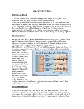 VOLCANIC ERUPTION Definition of Hazard History of Hazard