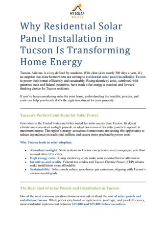Why Residential Solar Panel Installation in Tucson Is Transforming Home Energy