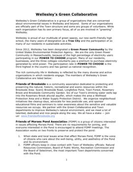 1" Wellesley’s Green Collaborative Wellesley’s Green Collaborative is a group of organizations that are concerned about environmental issues in Wellesley and beyond.