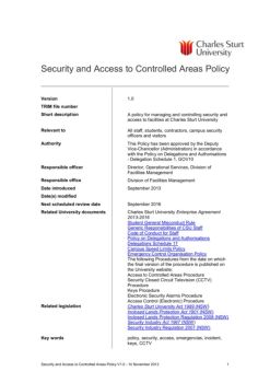 Security and Access to Controlled Areas Policy V1.0 - 14 November 2013 2 1 PURPOSE 1.1 The University has the right to regulate access to University Premises