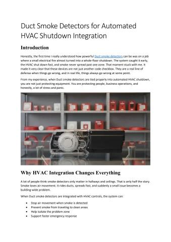 Learn how duct smoke detectors support automated HVAC shutdown, helping stop smoke spread, improve safety response, and protect building occupants and systems.