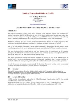 NATO – Medical Evacuation Policies in NATO MP-HFM-157-01
