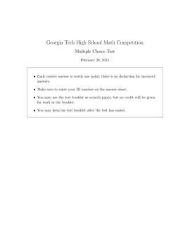 Georgia Tech High School Math Competition Multiple Choice Test February 28, 2015 Each correct answer is worth one point; there is no deduction for incorrect