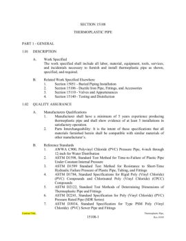 Contract Title, Thermoplastic Pipe, 15108-3 Rev.10/05 C. During delivery and handling, all materials shall be braced and protected from any distortion or damage; any ...