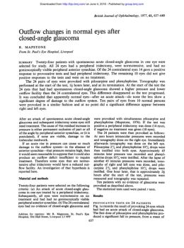 Outflow changes in normaleyesafter closed-angleglaucoma significant increase in pressure. In a later rejoinder (Lowe, 1969) to a paper by Harris andGalin (1969)