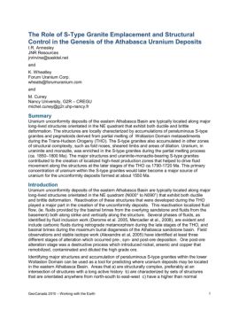 GeoCanada 2010 – Working with the Earth 1 The Role of S-Type Granite Emplacement and Structural Control in the Genesis of the Athabasca Uranium Deposits