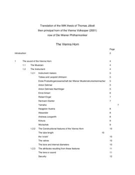 Translation of the IWK thesis of Thomas Jöbstl then principal horn of the Vienna Volksoper (2001) now of Die Wiener Philharmoniker The Vienna Horn