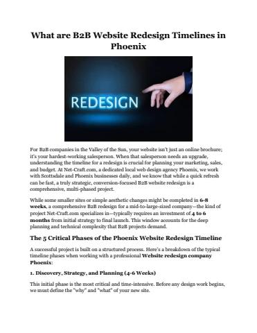 We work with Scottsdale and Phoenix businesses daily, and we know that while a quick refresh can be fast, a truly strategic, conversion-focused B2B website redesign is a comprehensive, multi-phased project. Know more https://www.net-craft.com/blog/b2b-website-redesign-phoenix/