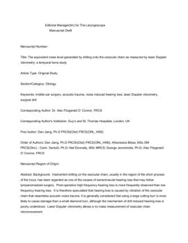 Editorial Manager(tm) for The Laryngoscope Manuscript Draft Manuscript Number: Title: The equivalent noise level generated by drilling onto the ossicular chain as ...
