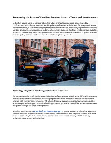 The future of chauffeur services in London, UK, and beyond is shaped by a commitment to excellence, innovation, and customer Experience. As technology continues to evolve and customer expectations evolve, chauffeur services will adapt to meet the changing demands of an increasingly discerning clientele.