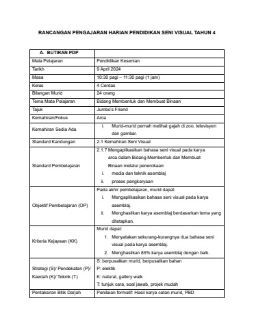 RPH PSV BIDANG MEMBENTUK DAN MEMBUAT BINAAN TAHUN 4