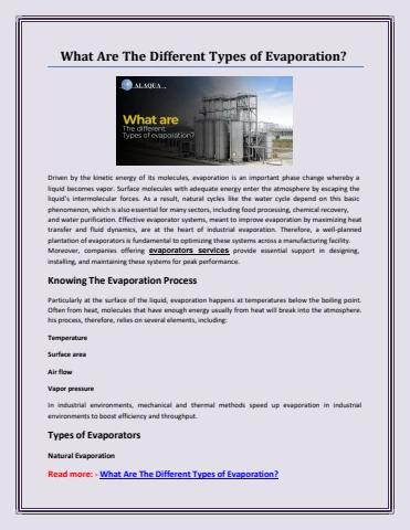 Supported by a broad spectrum of specialized evaporator designs customized for various sectors and materials, evaporation is a flexible process. From the basics of natural evaporation to high-performance thin film systems, the choice of evaporator has a major impact on product quality and process economics. Therefore, valuable partners for effective and environmentally friendly evaporation solutions are companies like Alaqua, which bring sophisticated technology and professional design expertise. Strategic design and strategic plantation of evaporators are essential for operational success, whether you are recovering chemicals, filtering water, or processing food.