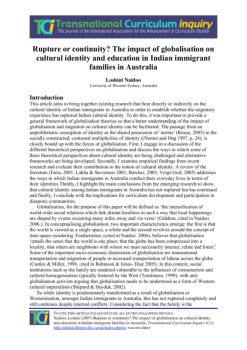 TO CITE THIS ARTICLE PLEASE INCLUDE ALL OF THE FOLLOWING DETAILS: Naidoo, Loshini (2007) Rupture or continuity? The impact of globalization on cultural identity