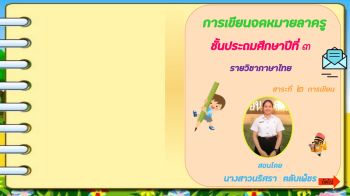 งานหนังสืออิเล็กทรอนิกส์ การเขียนจดหมายลาครู ชั้น ป.3 นางสาวนริศรา ตลับเพ็ชร เลขที่ 11 รหัสนักศึกษา 6240101113 ค.6204