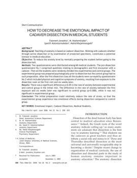 200 Pak J Med Sci 2006 Vol. 22 No. 2 www.pjms.com.pk Short Communication HOW TO DECREASE THE EMOTIONAL IMPACT OF CADAVER DISSECTION IN MEDICAL STUDENTS