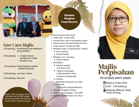 Hari: Selasa<br>Tarikh: 21 Mei 2024<br>Waktu: 3.30 petang - 6.30 petang<br>Tempat: Meqrizq, Taman Pekaka, Nibong Tebal, Pulau Pinang