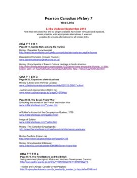 Pearson Canadian History 7. Web Links. Links Updated September 2013. Note that web sites that are no longer available have been removed and replaced,